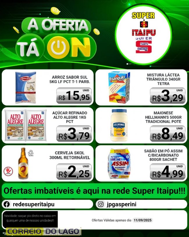 Super Itaipu e Super Santa Helena tem promoções exclusivas, válidas para nesta quinta-feira (11) ou enquanto durarem os estoques, confira e aproveite para economizar.