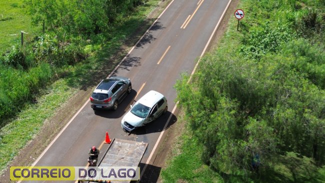 Um acidente de trânsito foi registrado por volta das 14h desta terça-feira (23) na PR-495, no Distrito do Portão Ocoí, em Missal. A batida envolveu dois carros, um Ford Focus branco e um Fox prata.