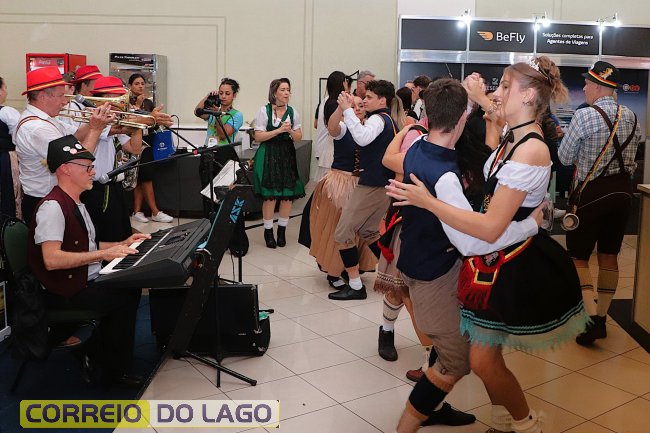 Estiveram disponíveis degustações de chocolates, chopp, linguiça, cuca, além de danças tradicionais.