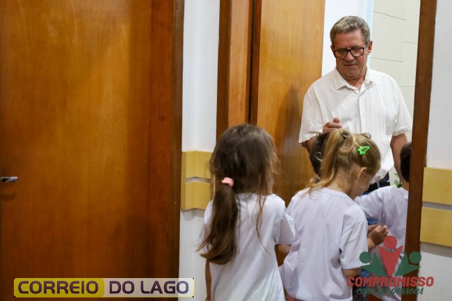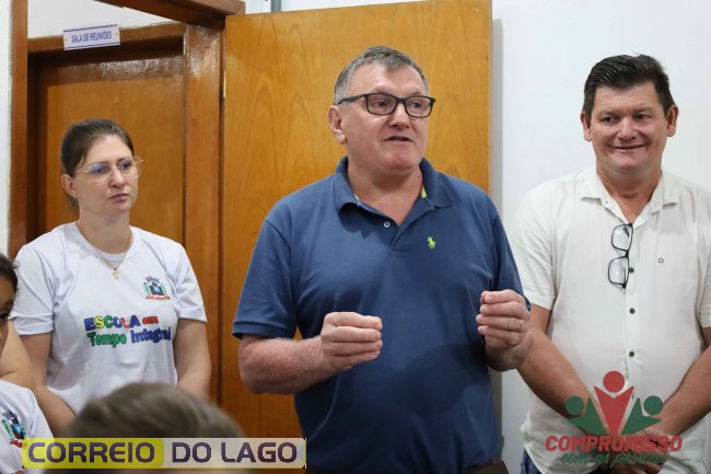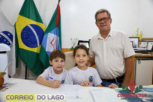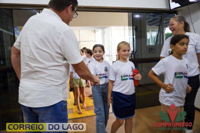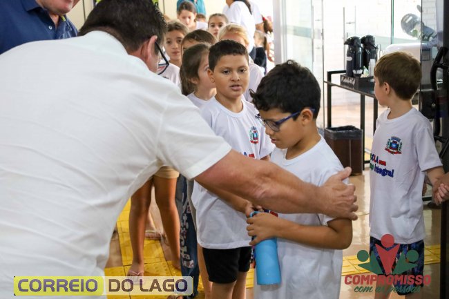Durante a visita, os alunos também estrearam os novos uniformes destinados à educação em Tempo Integral, adquiridos pela administração municipal. Foram entregues camisetas e bermudas para os estudantes que participam do programa, reforçando a identidade e organização das atividades escolares.