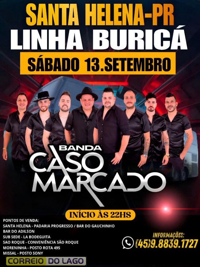 Santa Helena se prepara para uma noite de muita música e diversão neste sábado, 13 de setembro, com o baile na Linha Burica. A animação ficará por conta da Banda Caso Marcado, com início previsto para às 22h.