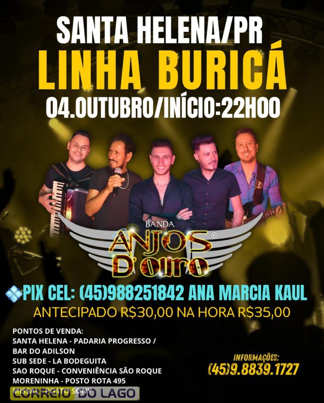 Santa Helena e região terão uma noite de música e diversão neste sábado (4), com a apresentação da banda Anjos de Ouro na Linha Buricá. O show começa às 22h e promete animar o público local.