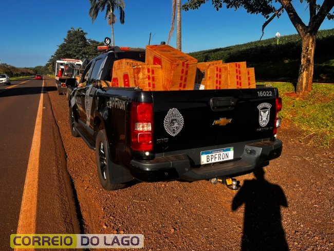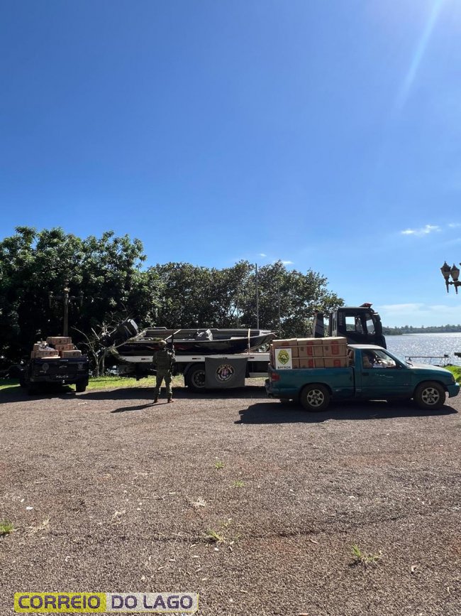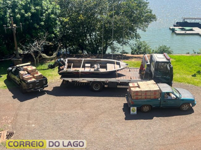 Uma ação integrada da Polícia Militar do Paraná, por meio do Batalhão de Polícia de Fronteira (BPFRON), resultou na apreensão de uma embarcação, um veículo e cerca de 3 mil pacotes de cigarros contrabandeados do Paraguai, na região do Lago de Itaipu, em Santa Helena. A ocorrência foi registrada a noite desta quinta-feira (18), durante patrulhamento embarcado realizado no âmbito da Operação Protetor de Divisas e Fronteiras. Os policiais avistaram uma embarcação suspeita transportando volumes em direção ao território brasileiro, o que motivou a tentativa de abordagem e o acionamento de uma equipe terrestre para cercar a área.