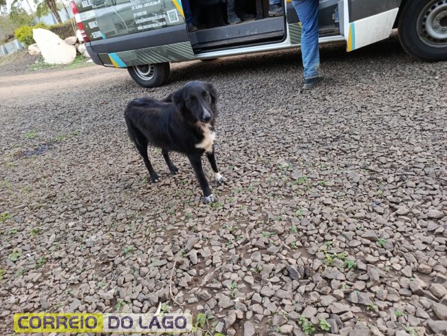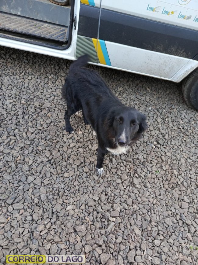 Um cachorro foi encontrado na região da pedreira localizada entre os distritos de Sub-Sede e São Clemente, em Santa Helena. O animal apareceu recentemente no local e está sob os cuidados da vigilante Adriana, que atua como segurança na pedreira.