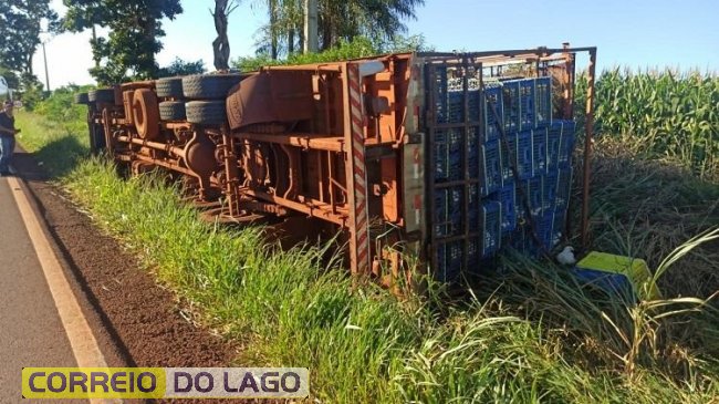 De acordo com informações apuradas no local, o caminhão seguia no sentido Vila Nova ao trevo de acesso a Toledo, quando o motorista, de 62 anos, perdeu o controle da direção e o veículo tombou às margens da pista.