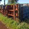 Caminhão carregado com frangos tomba na PR-239 entre Toledo e Vila Nova