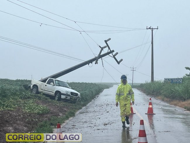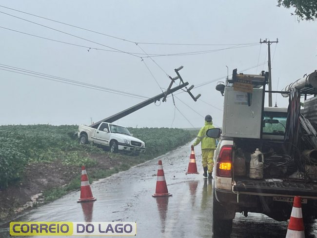 A ocorrência envolveu uma caminhonete S10, que colidiu contra um poste, após o motorista perder o controle, às margens da via. O impacto danificou a estrutura e derrubou cabos de energia de alta tensão sobre o solo, exigindo atenção redobrada das equipes para garantir a segurança do local e evitar novos incidentes.