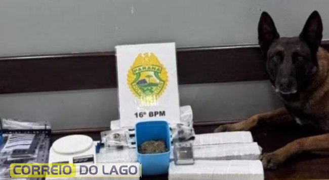 Cão farejador encontra drogas escondidas em lanchonete enquanto PM comprava lanche, no Paraná