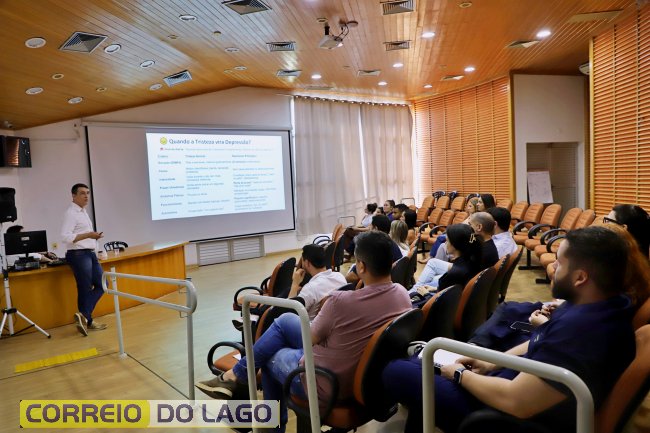 A ação foi conduzida pelos psiquiatras Dr. Iuri Silveira e Dr. Gustavo Ladeira, que apresentaram orientações práticas e atualizaram os médicos sobre protocolos e estratégias essenciais para o atendimento em saúde mental.