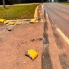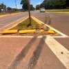 Carreta sobe em meio-fio e causa danos no novo trevo da PR-317 em Santa Helena