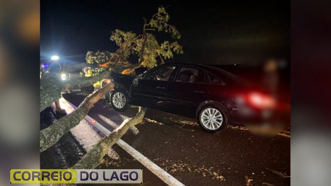 Carro atinge árvore caída durante temporal na PR-591, em Toledo