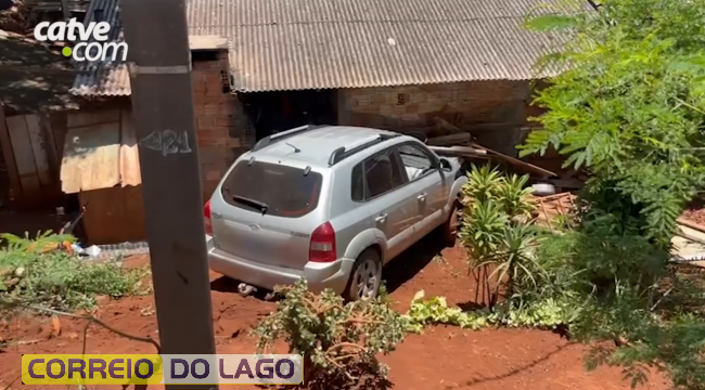 Automóvel desceu barranco e atingiu muro de imóvel no bairro Cancelli em Cascavel, no Oeste do Paraná, no início da tarde de quinta-feira (08). A batida aconteceu no cruzamento das ruas Manoel Ribas com Belém.