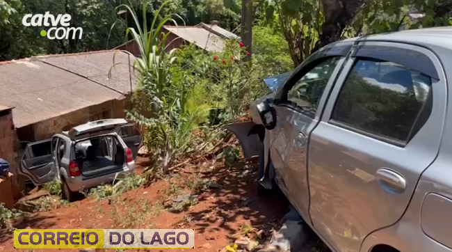 Com o impacto, o Tucson saiu da pista, desceu barranco e só parou após bater e quebrar a parede de uma casa. Já o Etios bateu contra uma árvore.