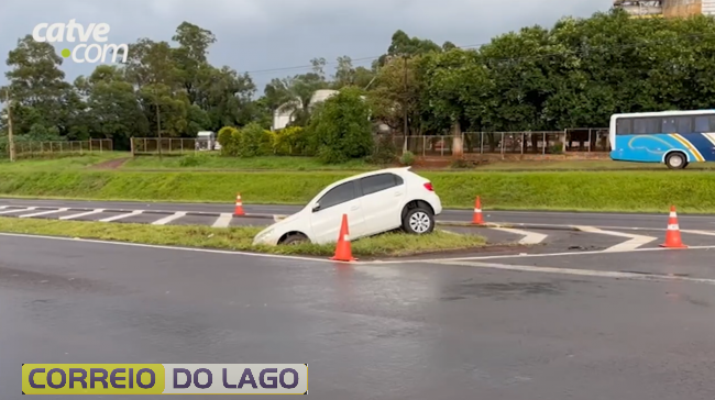 Segundo informado à reportagem, o motorista seguia na rodovia e tentou acessar um retorno para trafegar sentido ao Trevo do Bairro Guarujá. Ao tentar o frear o carro, o veículo deslizou e parou na canaleta de escoamento de água.