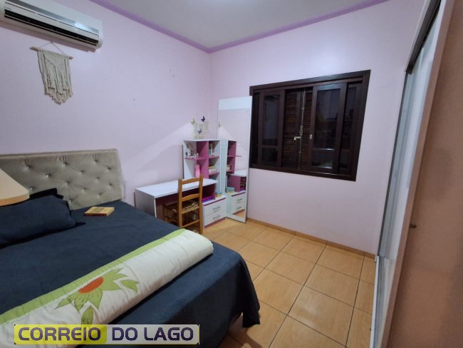 Uma casa em alvenaria de 99,9m² está disponível para venda em Santa Helena, na região central da cidade, na rua Mato Grosso, 1889. A casa possui dois quartos e uma suíte, banheiro social, sala, cozinha, despensa e lavanderia.
