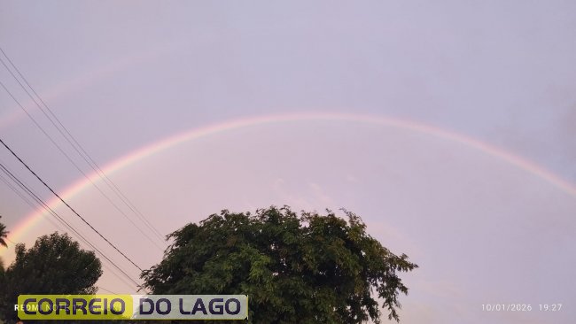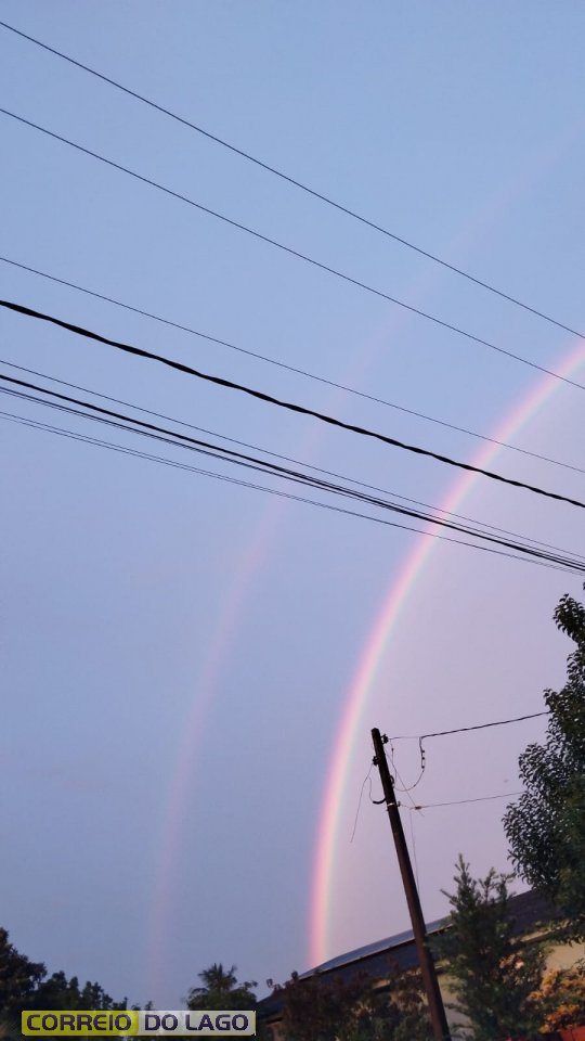 Céu de Santa Helena ganha arco-íris e chama a atenção de moradores