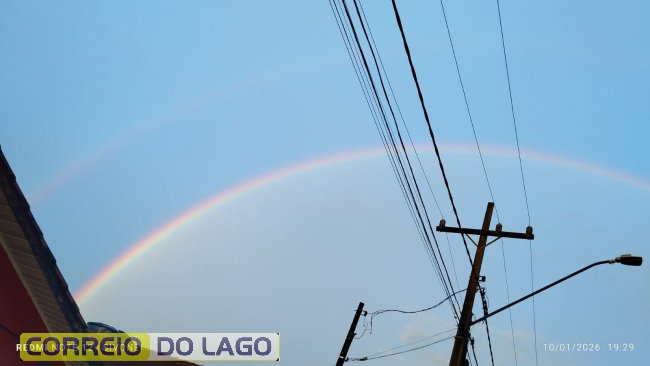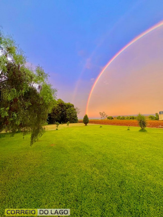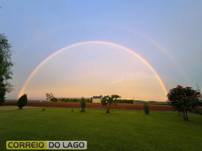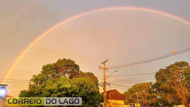 O arco-íris se formou com a abertura do sol no fim da tarde, após o período chuvoso e pôde ser observado por alguns minutos, destacando-se na paisagem do município.
