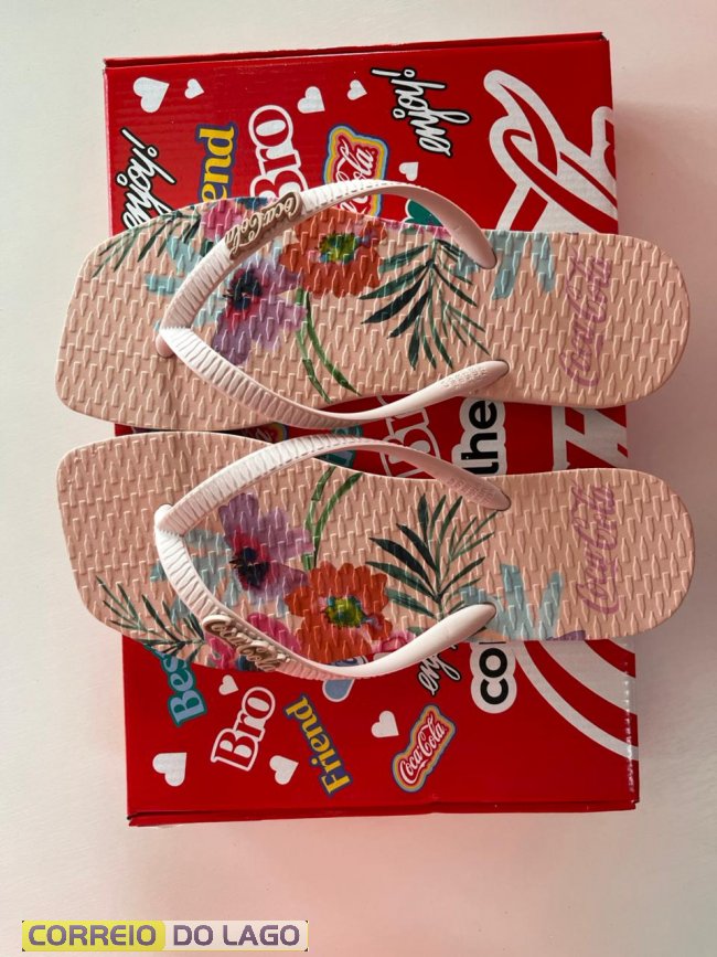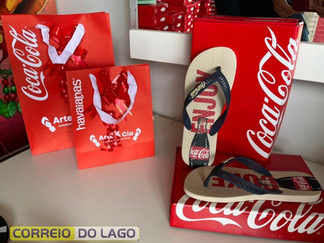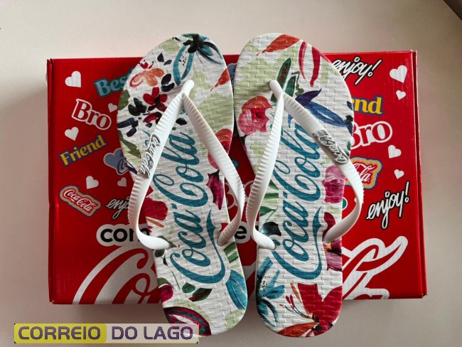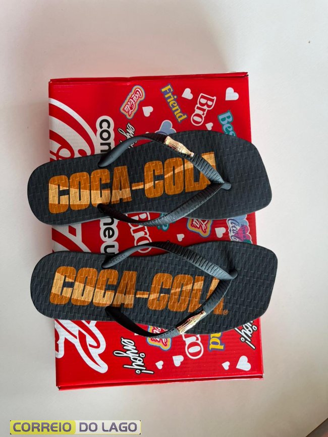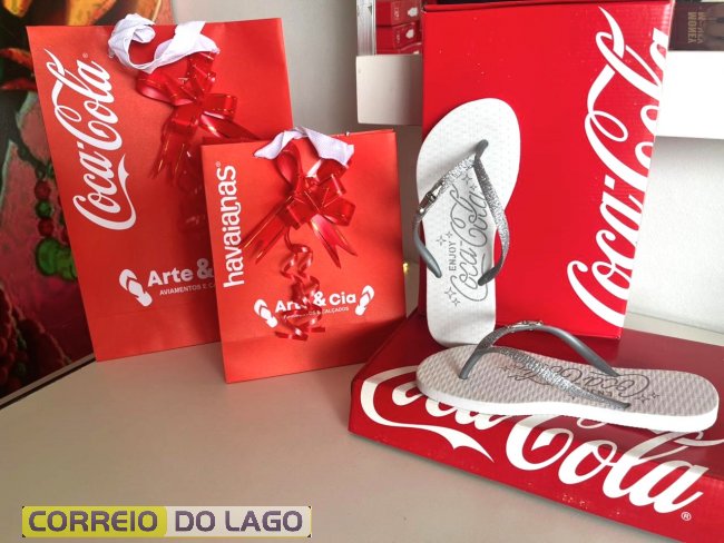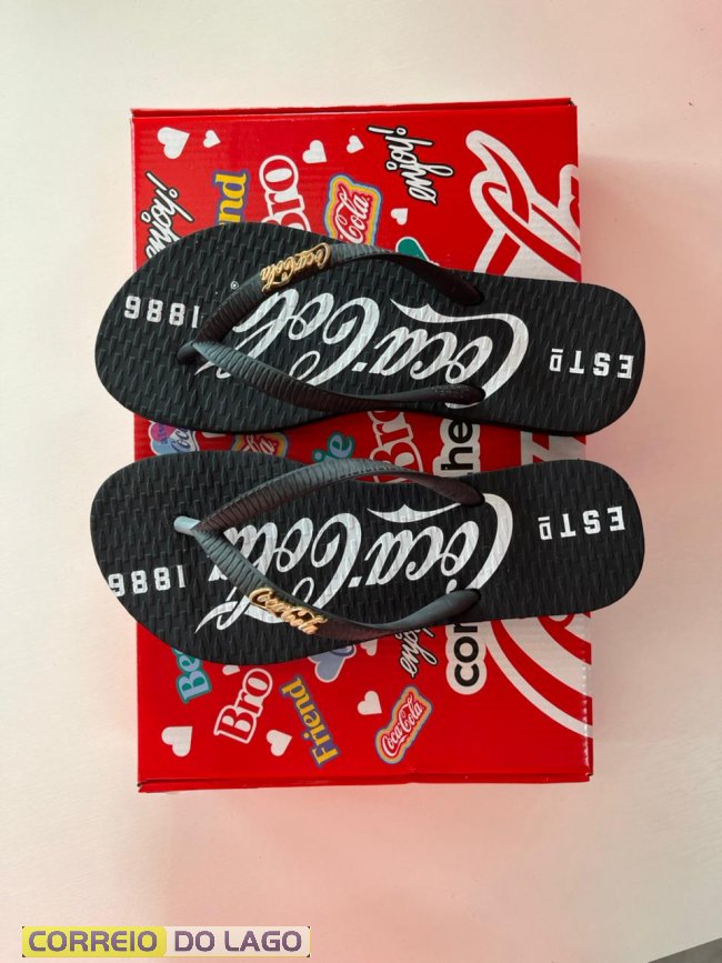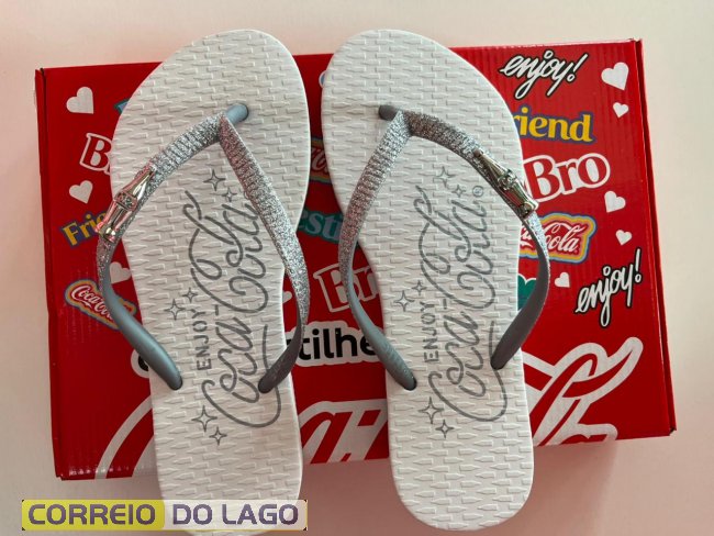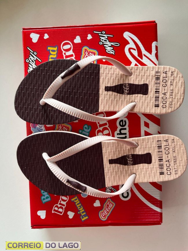 Chinelos Coca-Cola masculino e feminino entram em oferta especial de Natal na Arte&Cia de Santa Helena por R$ 69,90; confira de perto