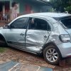 Batida ocorreu em trecho urbano e causou danos significativos a um automóvel, enquanto o caminhão teve apenas avarias leves