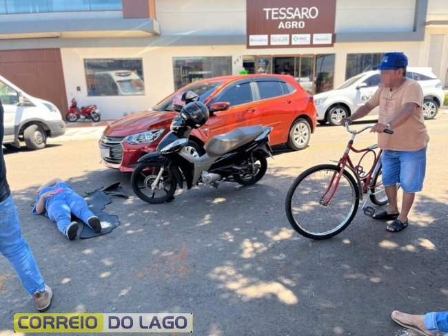 Colisão entre moto e carro deixa mulher ferida no centro de Santa Helena