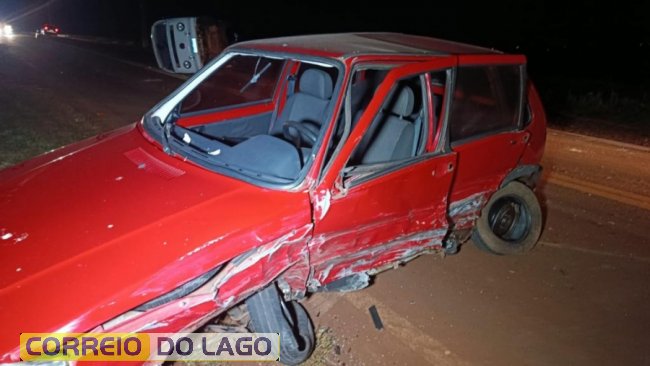 Com o impacto, a Kombi, com placas de Cascavel, capotou sobre a pista. O Honda Civic, também de Ouro Verde do Oeste, saiu para a margem direita da rodovia, enquanto o Fiat Uno parou na pista, no sentido contrário ao de sua circulação.