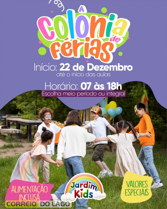 As férias de fim de ano estão chegando e a criançada de Santa Helena já pode se preparar para momentos de muita diversão e criatividade. O Jardim Kids vai abrir, a partir do dia 22 de dezembro, as inscrições para sua Colônia de Férias, que acontecerá com atividades das 7h às 18h. O espaço promete dias repletos de atividades ao ar livre, oficinas criativas, culinária, histórias e músicas, garantindo diversão e aprendizado para os pequenos.