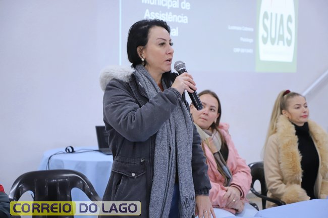 Estiveram presentes, a Secretária de Assistência Social Jaqueline Eduarda Tozo Royer, a presidente do Conselho Municipal de Assistência Social Cristina Kalinski Bohnert, a Assistente Social e Secretária Executiva do CMAS Tânia Mahl, que representou todos os trabalhadores do SUAS, e Pascual Juarez, representante de todos os usuários.
