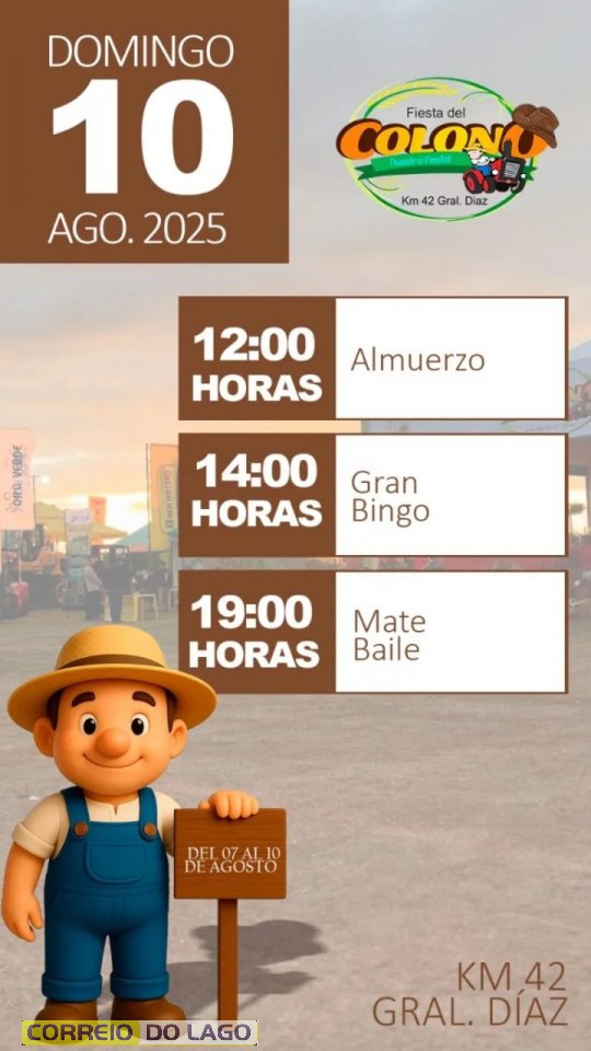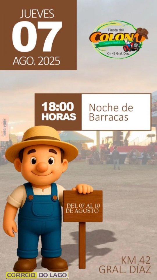 Começou na noite de quarta-feira (06) e seguirá até domingo (10), em Mbaracayú, município do Paraguai na região do lago de Itaipu, em frente a Santa Helena, no Paraná, a 17ª Festa do Colono, organizada pela comunidade de General Díaz (km 42).