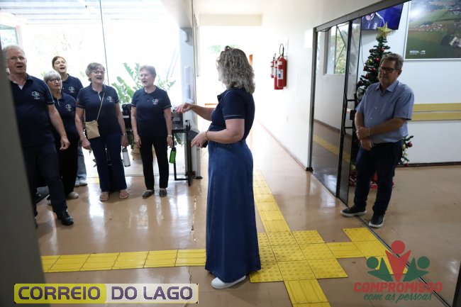 O Coral Municipal esteve na terça-feira (09), visitando o Paço Municipal com apresentações que remetem a este espírito de Natal. Além das músicas, os Coralistas, sob o comando da maestrina Cleci Luft, proporcionaram momentos marcantes com palavras de otimismo.
