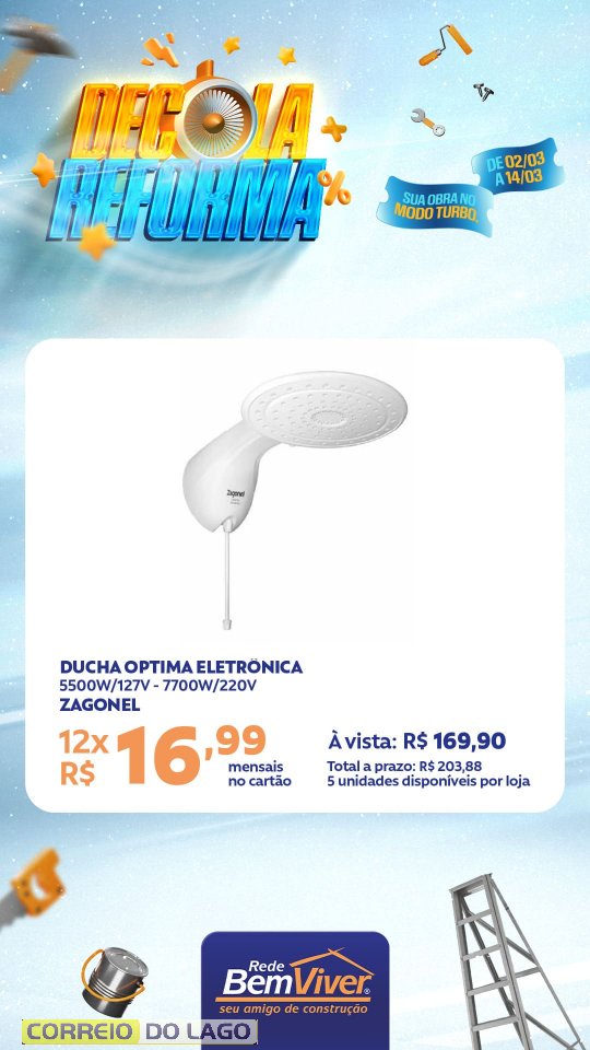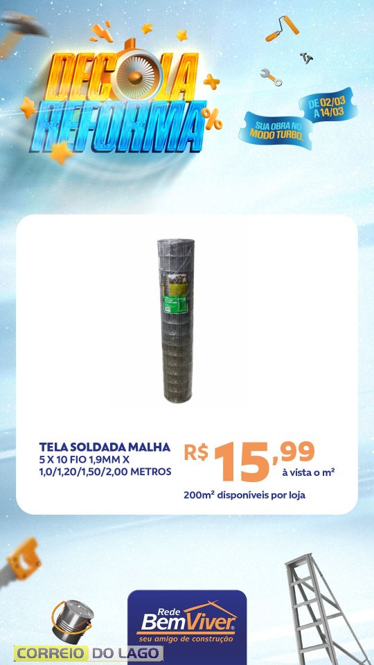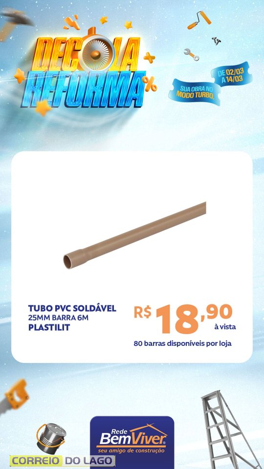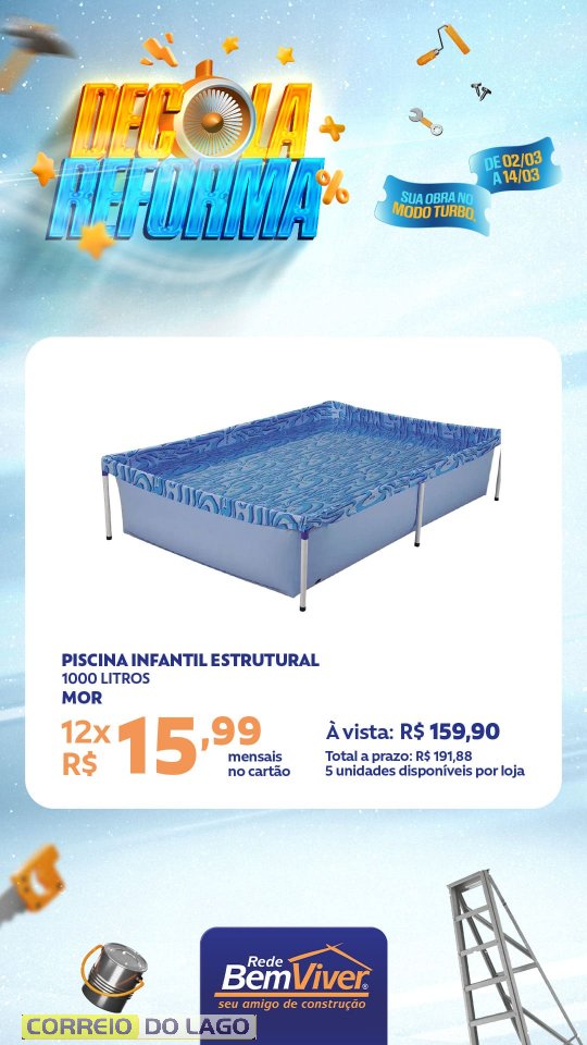 Quem deseja aproveitar as condições pode visitar a Ponto Forte Rede Bem Viver em Santa Helena e conferir de perto as ofertas da Decola Reforma, garantindo os materiais necessários para a obra com preços especiais.