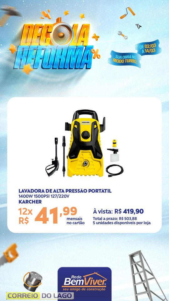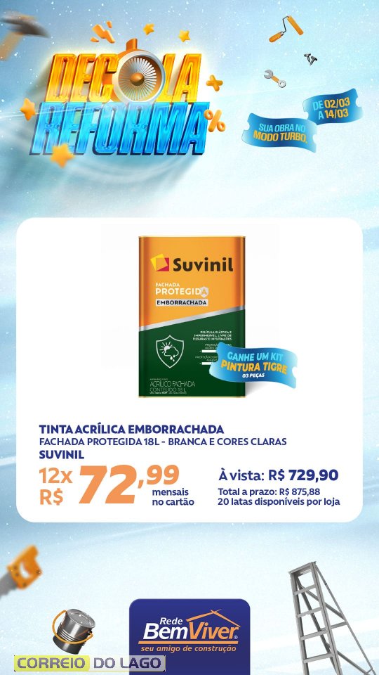 A campanha segue até o dia 14 de março, contemplando produtos para pintura, acabamento e construção, voltados a quem está reformando ou iniciando um novo projeto.