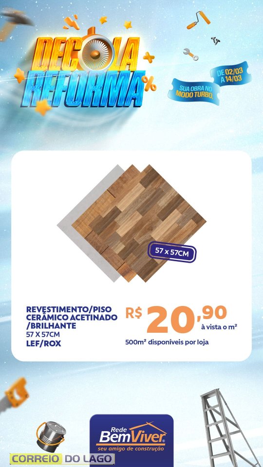 Nesta segunda-feira (02) tem início a promoção Decola Reforma na Ponto Forte Rede Bem Viver, em Santa Helena, reunindo condições especiais em tintas, pisos, argamassa e diversos materiais para obra.