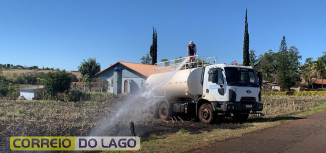 No local, um trator já tentava controlar o fogo, que teria começado em lixo descartado de forma irregular. A equipe da Defesa Civil utilizou cerca de 5 mil litros de água com o caminhão-pipa para conter as chamas e evitar maiores danos.