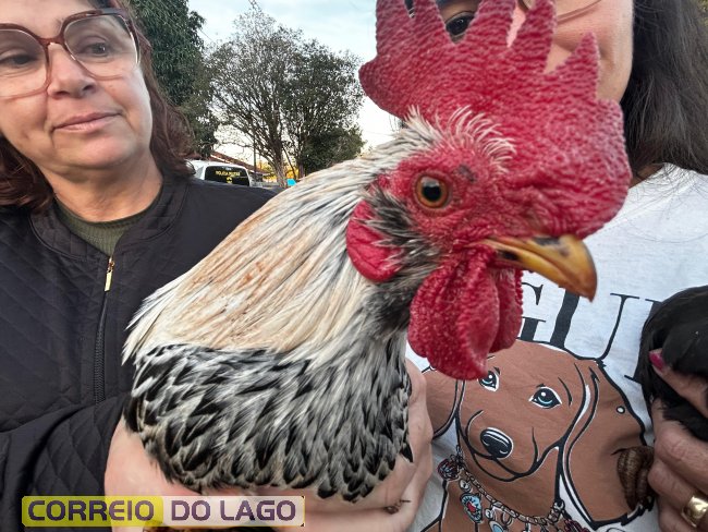 No local indicado pela denúncia, foram encontrados um cachorro e dois galos “ganizé” em condições precárias. Segundo relato das cuidadoras, o cão estava amarrado há vários dias, preso com uma coleira na parte externa da casa, sem abrigo, alimento ou água disponíveis.