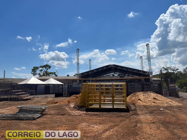 A estrutura da festa já está sendo montada para receber o público com entrada gratuita em todas as noites. Além do rodeio, o evento contará com a Feira da Agricultura Familiar, integrando entretenimento e valorização da produção local.