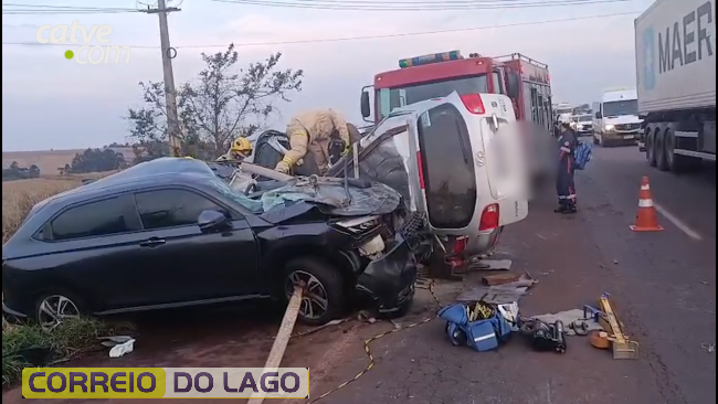 Dois carros bateram na BR-163, no trecho entre Cascavel e Toledo, na tarde desta segunda-feira (15). Duas pessoas morreram no local; ainda não há identificação.