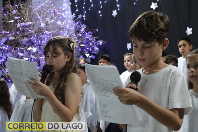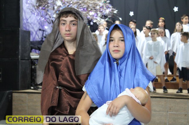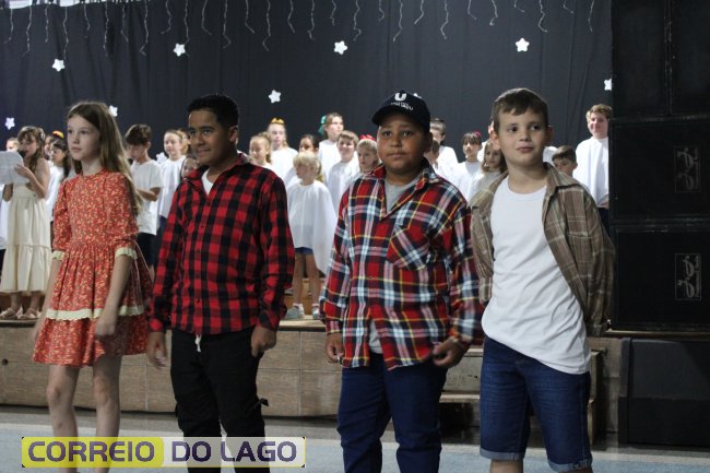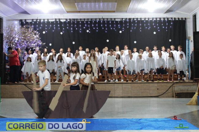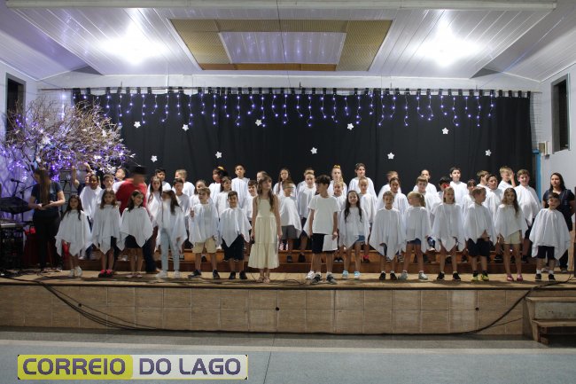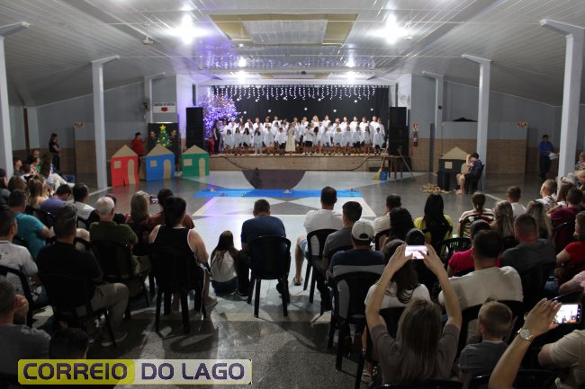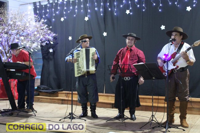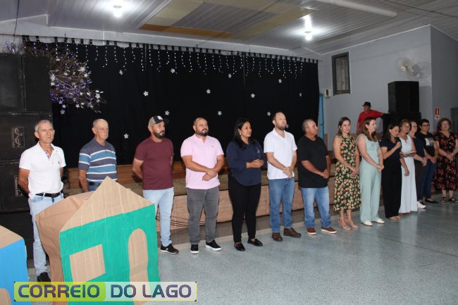 A programação contou com belas apresentações dos alunos da Escola Municipal Nereu Ramos, que emocionaram o público com músicas e encenações preparadas especialmente para a ocasião. Um dos momentos mais aguardados da noite foi a chegada do Papai Noel, que encantou as crianças e trouxe ainda mais magia ao evento. Para completar a festa, o grupo musical Filhos da Fronteira animou o público, envolvendo a comunidade.