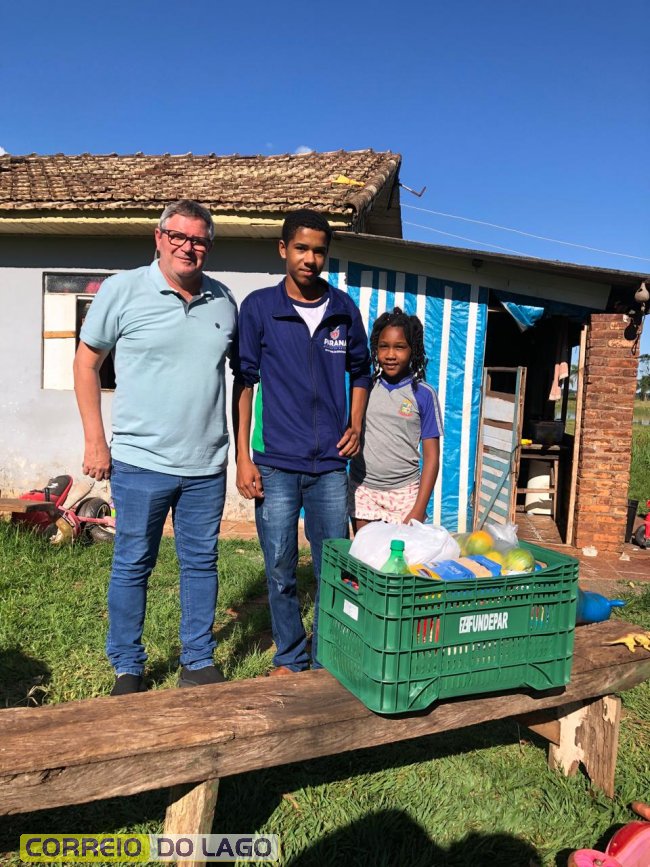 Estudantes do 6º A do Colégio São José arrecadam alimentos e distribuem a famílias da comunidade, em São José das Palmeiras
