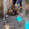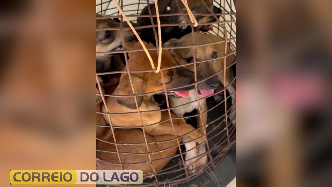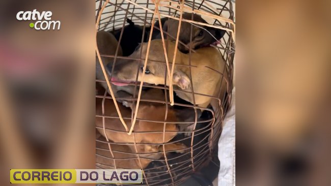No vídeo registrado no momento que os animais são localizados, é possível ouvir os latidos. Nas imagens é possível ver embaixo do saco de ráfia, havia uma gaiola improvisa e com seis filhotes de cachorro dentro.