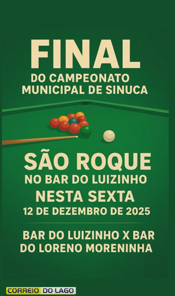 A grande final do Campeonato Municipal de Sinuca de São Roque está confirmadíssima para esta sexta-feira (12), no Bar do Luizinho e atenção: o evento NÃO está cancelado por causa da chuva. O espaço é totalmente coberto, garantindo conforto e segurança para o público. Vai ter final com chuva ou com sol!