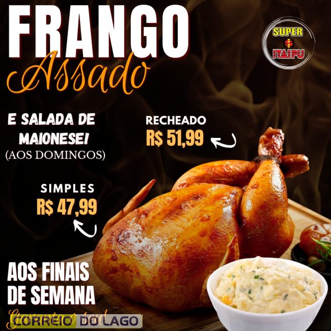 E no fim de semana tem frango assado com maionese. Faça sua encomenda e garanta o almoço pronto para reunir a família.