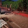 Um capotamento mobilizou equipes de emergência no início da manhã deste sábado (31) na cidade de Toledo, após um veículo invadir a calçada e atingir estruturas à margem da via.