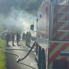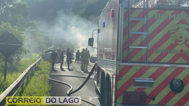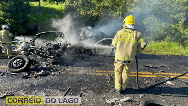 O motorista conseguiu sair cortando o cinto de segurança com um canivete. O condutor do automóvel que também pegou fogo e a condutora da camionete sofreram ferimentos leves.