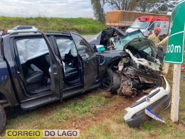 A colisão envolveu um automóvel Fiat Punto, de Assis Chateaubriand, e uma caminhonete Ford Ranger preta, de Toledo