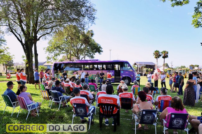 Na última sexta-feira (19), a Administração Municipal oficializou a chegada do ônibus do programa Cuida Mais Paraná, iniciativa voltada ao atendimento da população idosa. A entrega contou com a presença da Secretária de Estado da Mulher, da Igualdade Racial e da Pessoa Idosa, Leandre Dal Ponte, além de autoridades locais, que foram recepcionadas pelos próprios idosos do município.