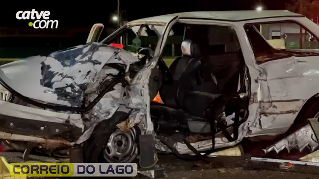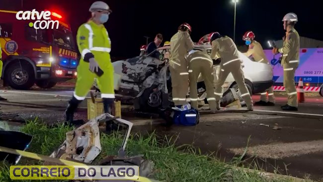 Acidente grave entre dois carros deixou três pessoas feridas na madrugada deste domingo (01), na BR-277, no trevo do Guarujá, em Cascavel.