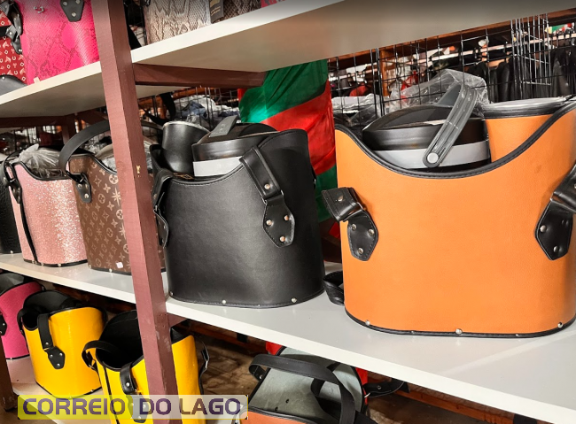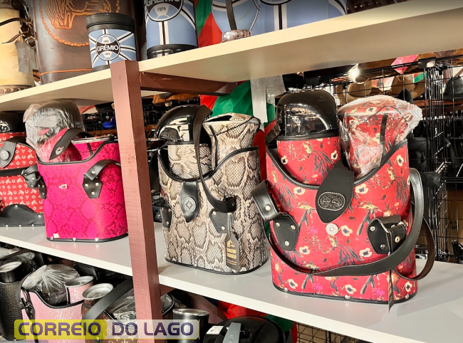 Entre as opções disponíveis estão as mateiras em couro, com diferentes capacidades e estilos. A mateira grande de 1,8 litro em couro pelo de boi custa R$ 154,00, enquanto a versão menor, de um litro, está disponível por R$ 133,00. Também há kits completos com quatro peças combinadas, incluindo mateira e suportes, comercializados por R$ 394,00, indicados para quem procura praticidade e conjunto padronizado.