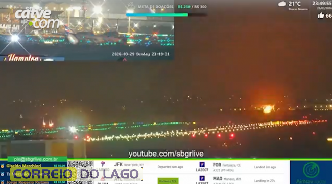 O motor do Airbus A330-300, da Delta Airlines, explodiu momentos após a decolagem do Aeroporto de Guarulhos, em São Paulo, na noite desse domingo (29). O piloto teve de fazer um pouso de emergência. Ninguém ficou ferido.