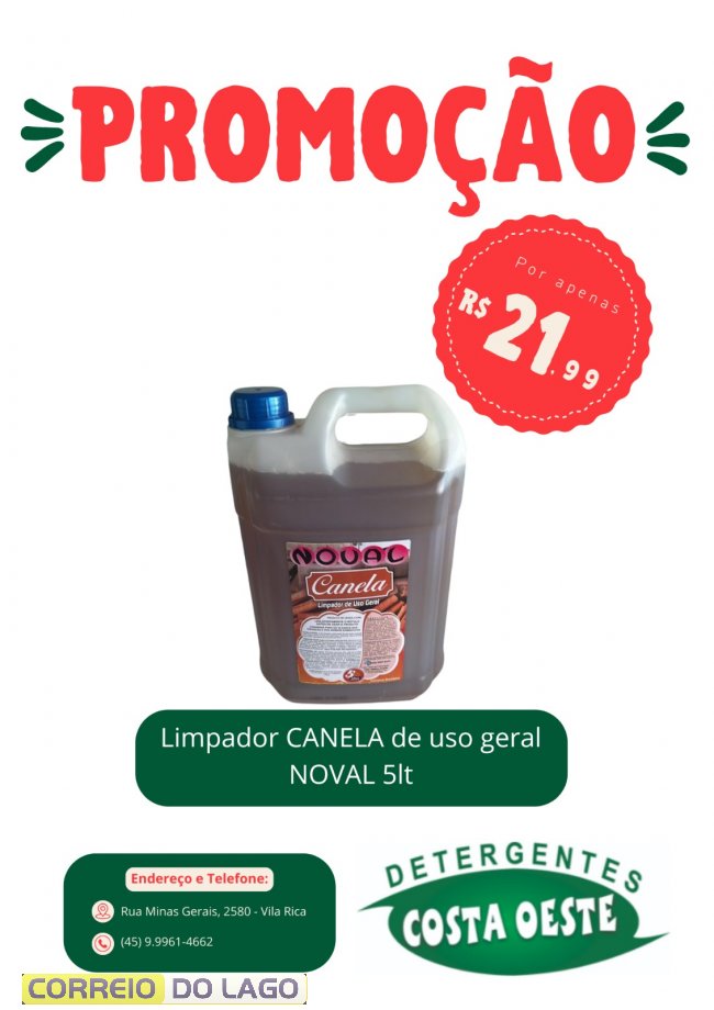 Limpador Canela Uso Geral Noval 5L, R$ 21,99;