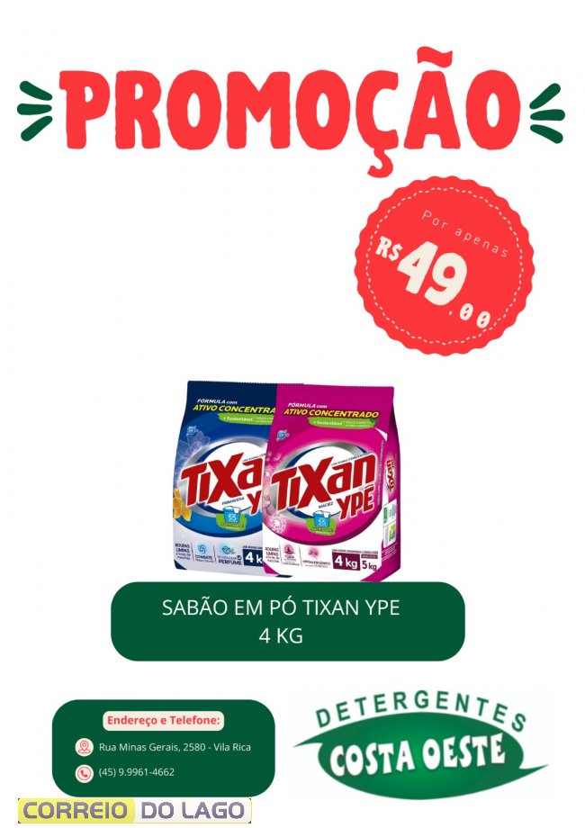 O mês de fevereiro começa com boas oportunidades para quem quer economizar nos produtos de limpeza do dia a dia. A Detergentes Costa Oeste, em Santa Helena, anunciou uma nova rodada de promoções com preços especiais em sabões em pó, detergentes, amaciantes, desinfetantes, águas sanitárias e itens essenciais para limpeza e higiene.